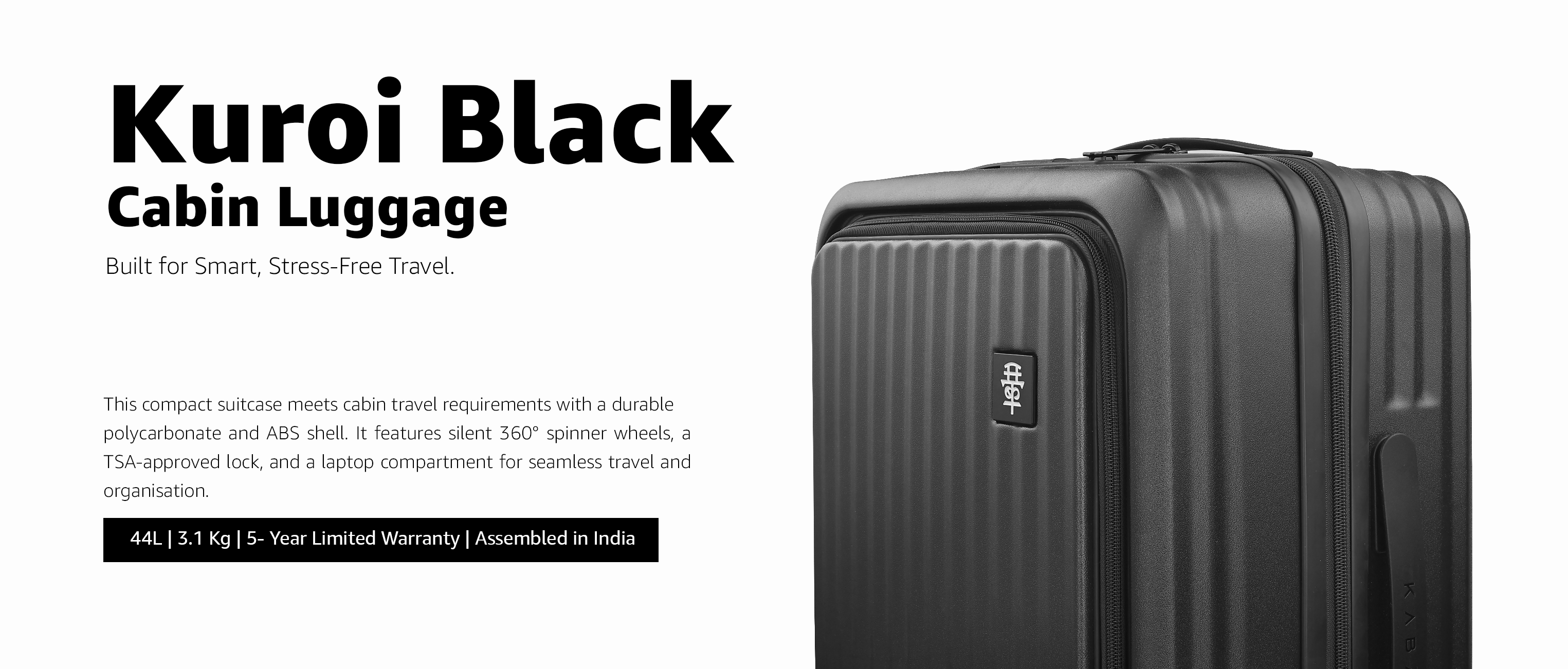 Kuroi WHITE CABIN HARD LUGGAGE WITH LAPTOP COMPARTMENT