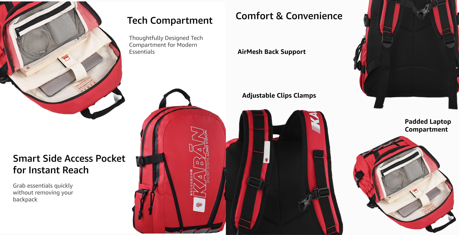 Thoughtfully placed compartments that organise chargers, notebooks, and everyday essentials with ease.
